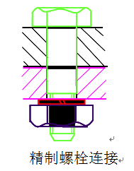 连接特点:螺杆与被连接的零件孔之间采用基孔制过渡配合,位于被连接零件接触面处的螺杆截面受到剪切力作用,称为受剪螺栓连接。