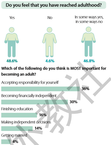 4.Which do you think is most important for becoming an adult, accepting responsibility foryourself, becoming financially independent, finishing education, makingindependent decisions, or getting married?