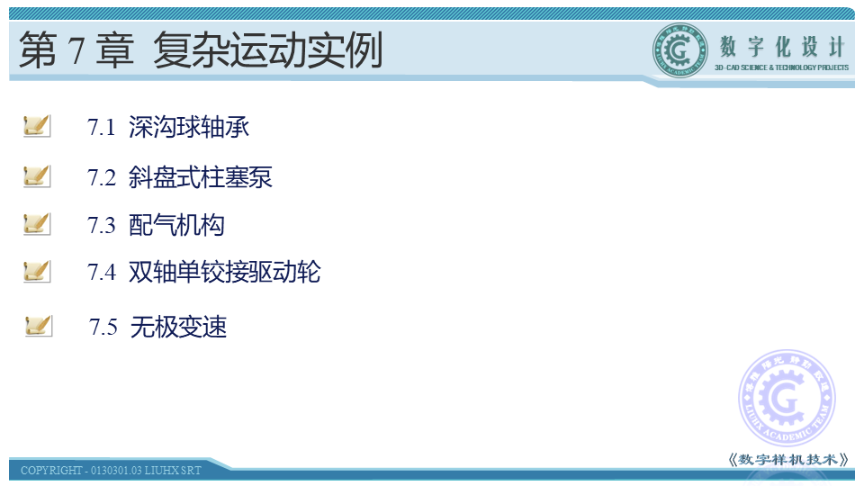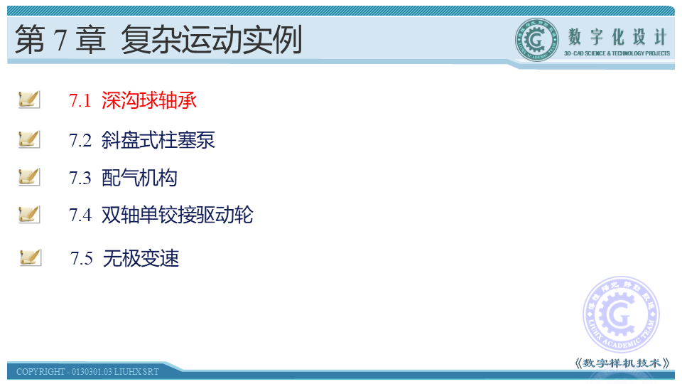 本节主要讲述深沟球轴承运动仿真的创建,该运动包括外圈相对于内圈的旋转,钢球在内圈、外圈之间的滚动,以及保持架在钢球推动下的旋转。通过静态装配、运动副转换、模型驱动完成运动仿真的创建。以最典型最简单的运动仿真设计,方便读者系统、快速的了解运动仿真的实质。