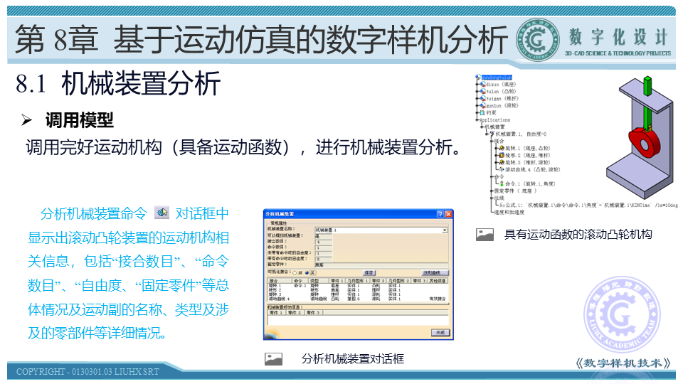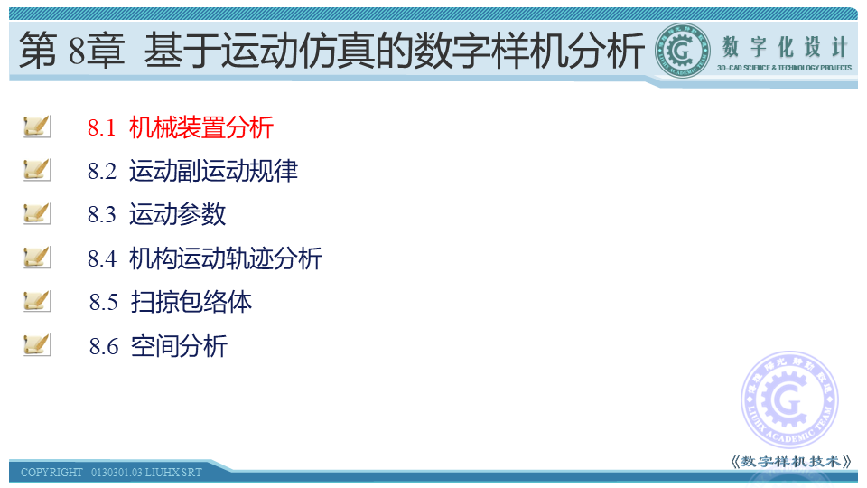 本节主要讲述机械装置的分析,通过对机械装置的分析,从而得到数据,加深对装置特性的掌控。为后续数字样机分析奠定基础。