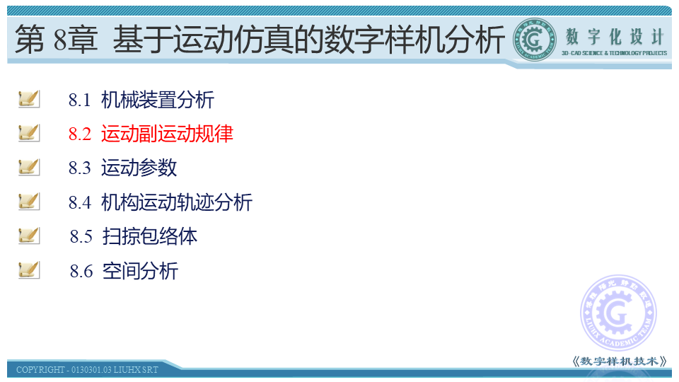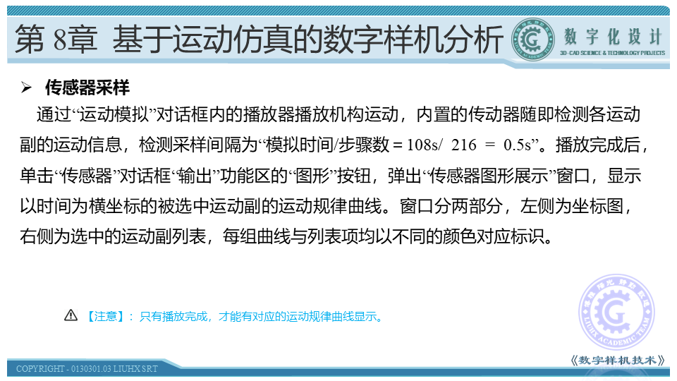本节主要讲述运动副运动规律的分析,通过对滚动凸轮机构进行运动模拟,并设置传感器从而得到相关运动规律曲线,加深对机构运动特性的了解,为后续数字样机分析奠定基础。