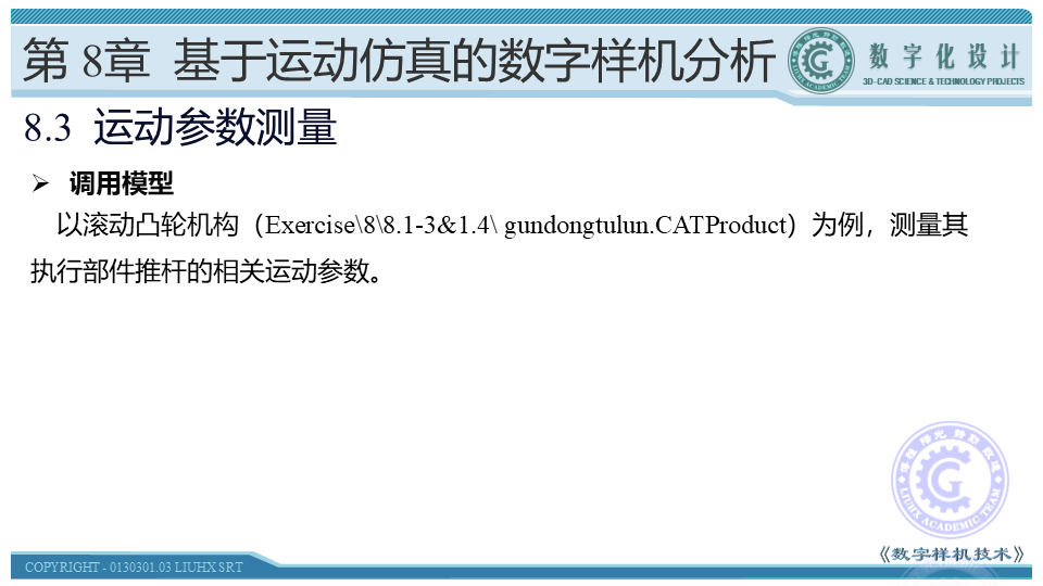 本节主要讲述运动参数的测量,通过对滚动凸轮机构进行运动模拟,并设置传感器从而进行测量并得到相关运动规律曲线,加深对机构运动特性的了解,为后续数字样机分析奠定基础。