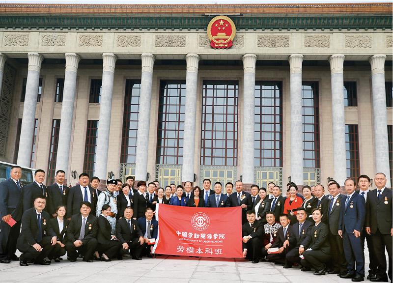 2018年“五一”国际劳动节前,中国劳动关系学院劳模本科班全体学员给习近平总书记写信,汇报学习习近平新时代中国特色社会主义思想的体会,表达了当好主人翁、建功新时代的决心。4月30日,习近平总书记给学员们回信,勉励他们珍惜荣誉、努力学习,继续拼搏、再创佳绩。图为2019年4月23日,参加“五一”国际劳动节暨全国五一劳动奖和全国工人先锋号表彰大会的中国劳动关系学院劳模本科班学员代表合影。工人日报记者 杨登峰/摄