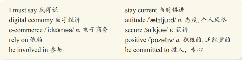 4.Listen to the following conversation twice and then complete the passage according to what you’ve heard. Getting to know the words and expressions in the box below first might be helpful.