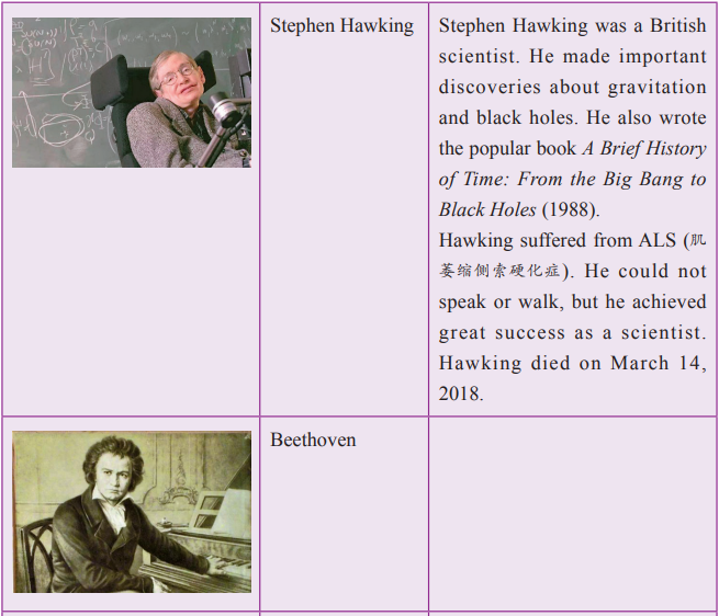 1.Look at the people in the pictures below. Choose one of them and talk about him/her with your classmates. The first talk has been done as an example.