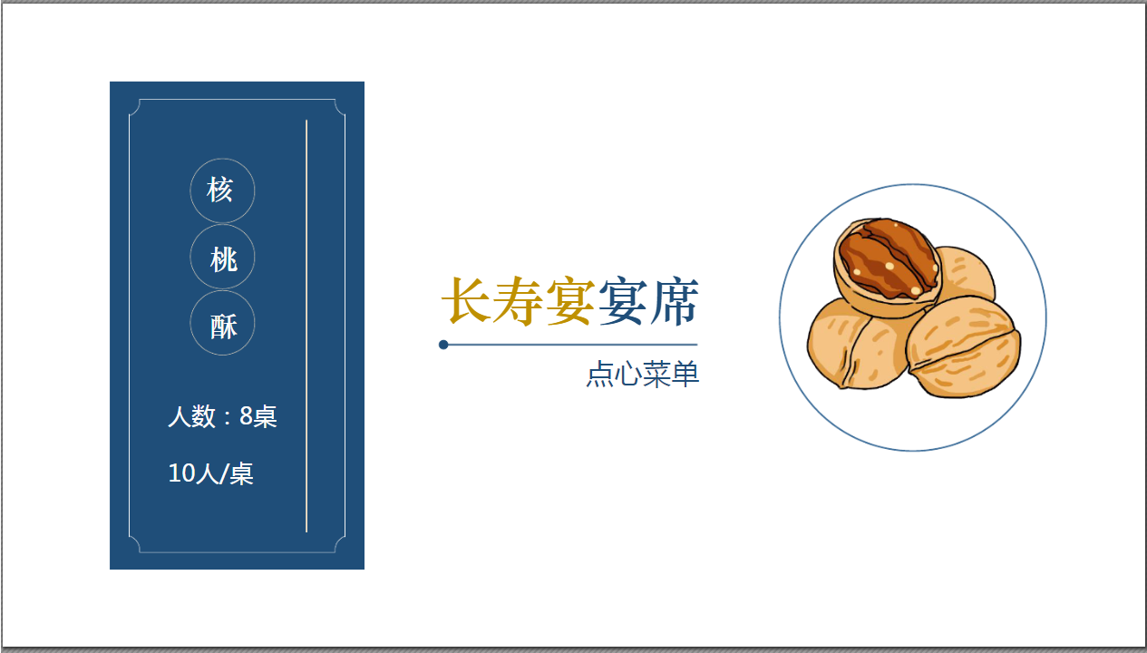 为酒店提供“长寿宴”所需的宴席点心——核桃酥