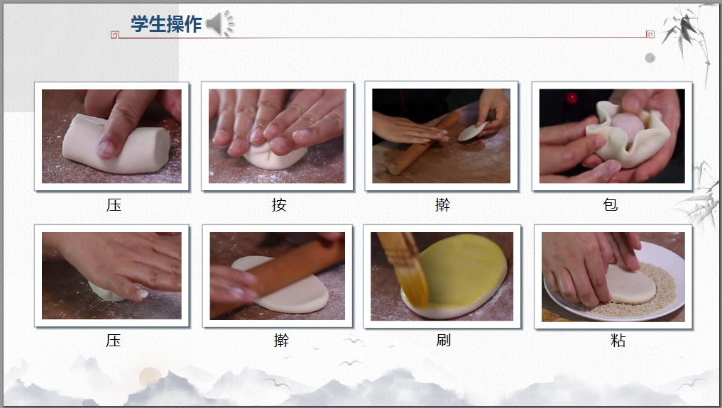请同学们观看蟹壳黄的制作微课,对蟹壳黄的工艺流程有初步认识。
