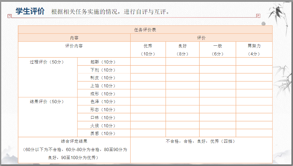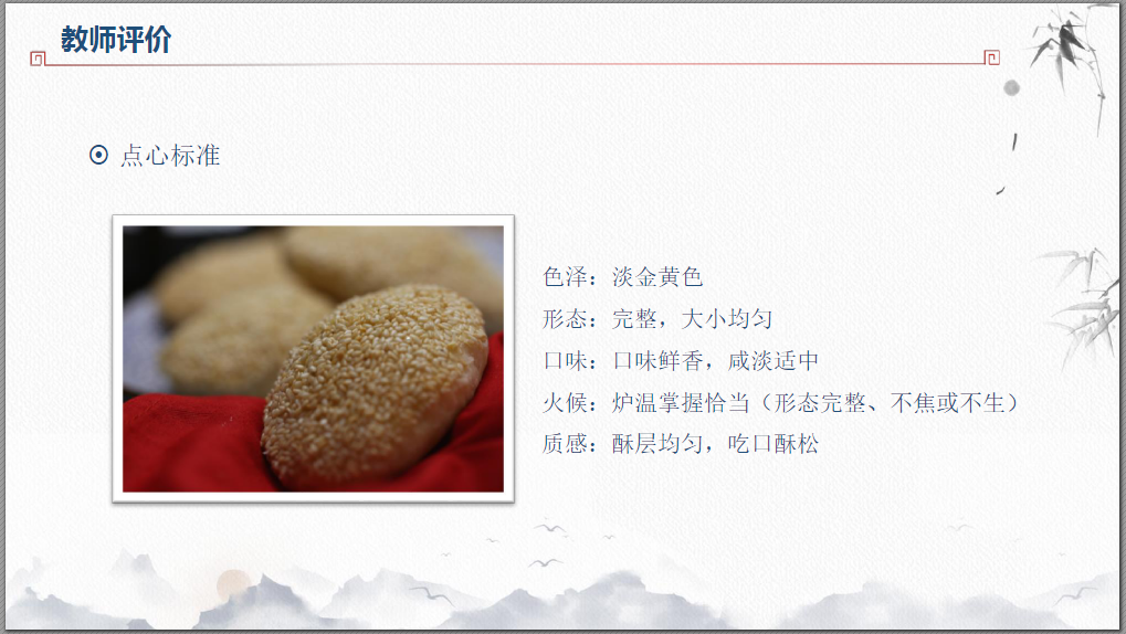 赏微课,学制作:蟹壳黄的成形。能准确掌握蟹壳黄成形的技法、要领及质量标准。