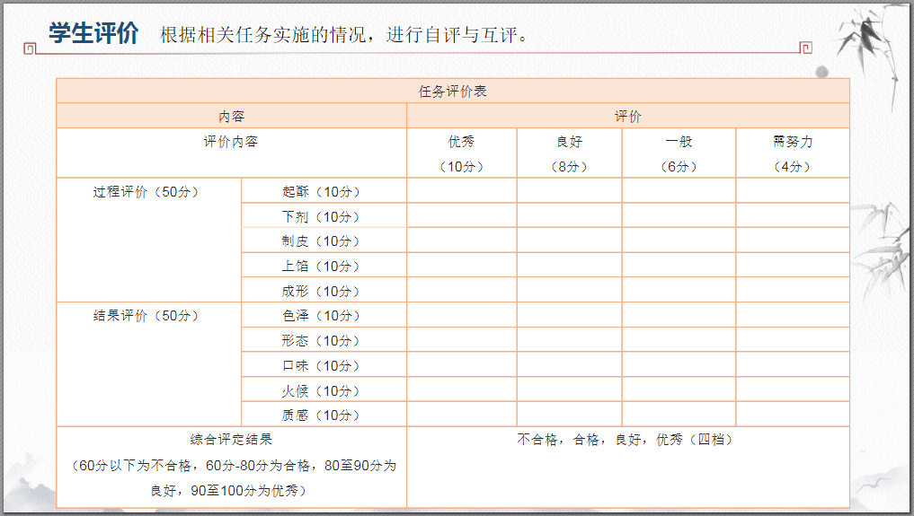 赏微课,学制作:鲜肉月饼的成形。能准确掌握鲜肉月饼成形的技法、要领及质量标准。