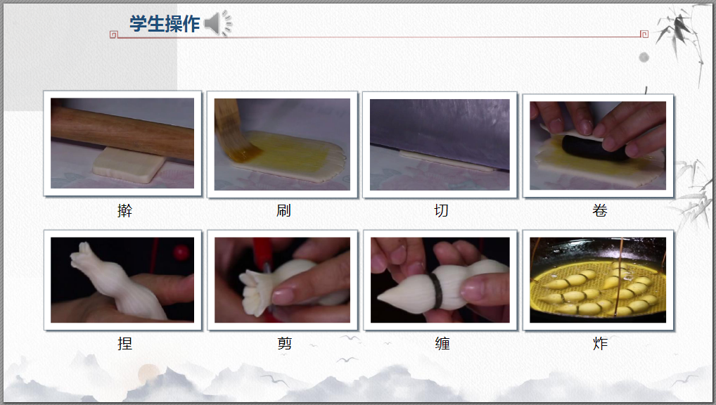 学生操作训练(第二次操作):莲藕酥的成形。