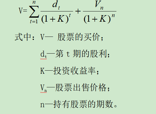 一般情况下,企业进行股票投资可以取得股利,股票出售时也可收回一定资金,只是股利不同于债券利息,股利是经常变动的,股票投资的收益率是使各期股利及股票售价的复利现值等于股票买价时的贴现率。即: