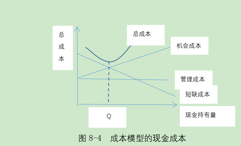 成本模型强调持有现金是有成本的,最优的现金持有量是使得现金持有量成本达到最小化。成本模型对与现金持有成本主要包括以下几项: