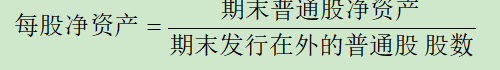 每股净资产,又称每股账面价值,是指企业期末普通股净资产与期末发行在外的普通股股数之间的比率。用公式表示为: