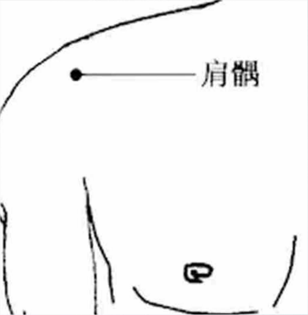 【位置】在肩部三角肌上,臂外展,或 向前平伸时,当肩峰前下方凹陷处。