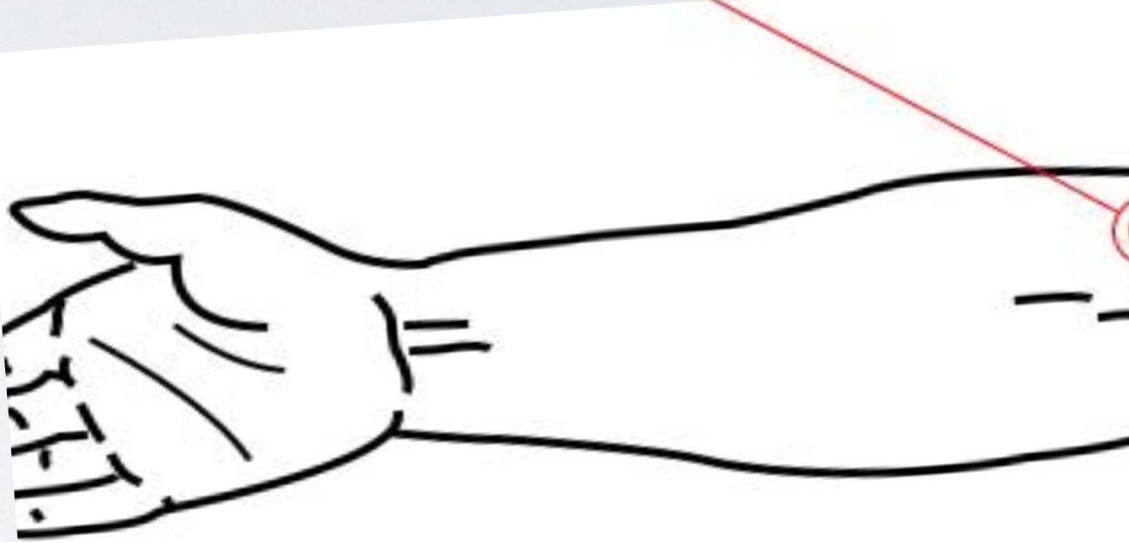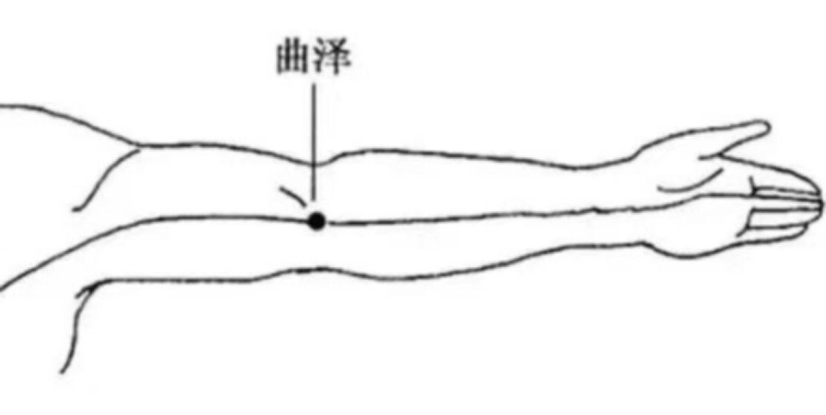 【位置]在肘横纹中,肱二头肌 腱棧侧凹陷处,微屈肘取穴。