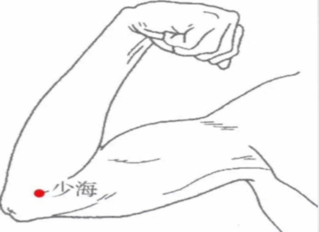 【位置】屈肘,当肘横纹内侧端与肱⻣内上髁连线的中点处。