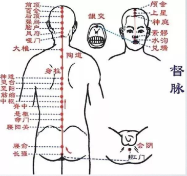 阳脉,调节阳经气血,主导一身 阳气功能活动的作用,主治脊柱 强直、角弓反张、脊背疼痛。