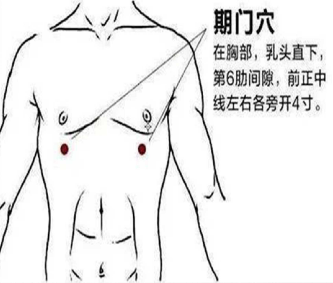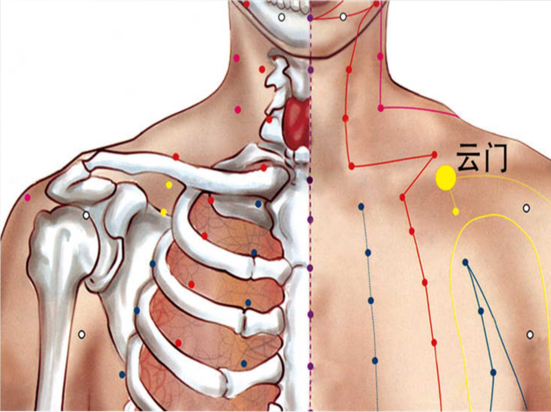 【位置】位于胸部,锁骨下窝凹陷 中,肩胛骨喙突内缘,前正中线旁 开6寸。