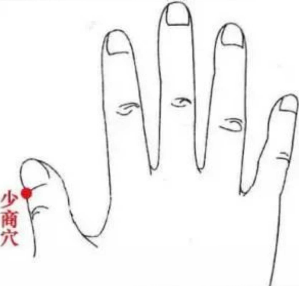 【位置】位于手指,拇指末端桡侧,指甲根角侧上方0.1寸。