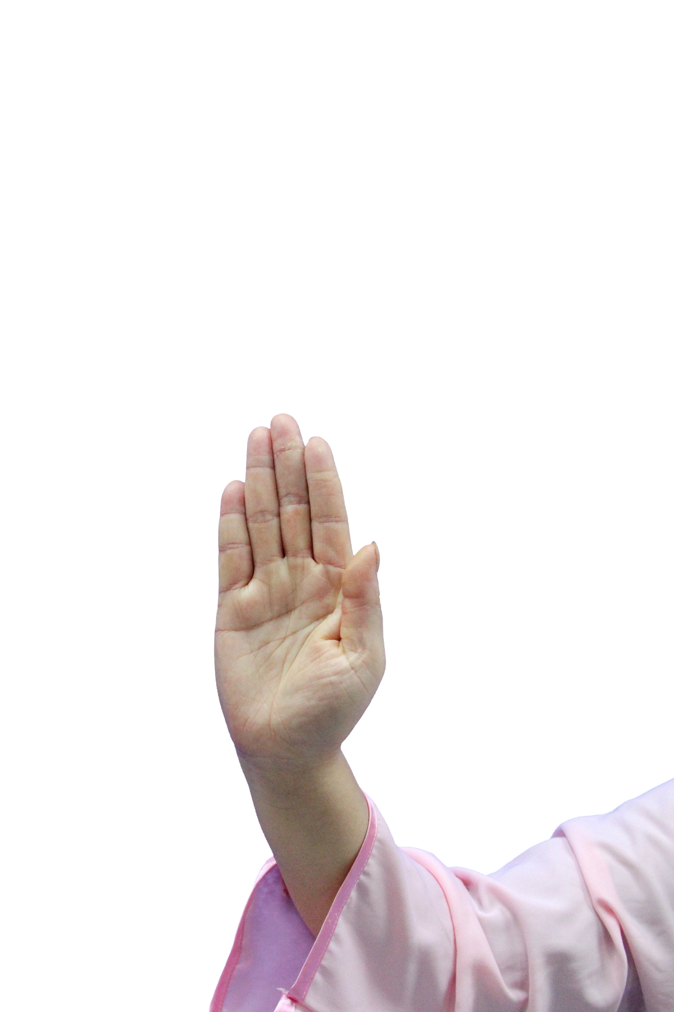 五指伸直、分开,拇指、食指、无名指、小指内收(图4 )。