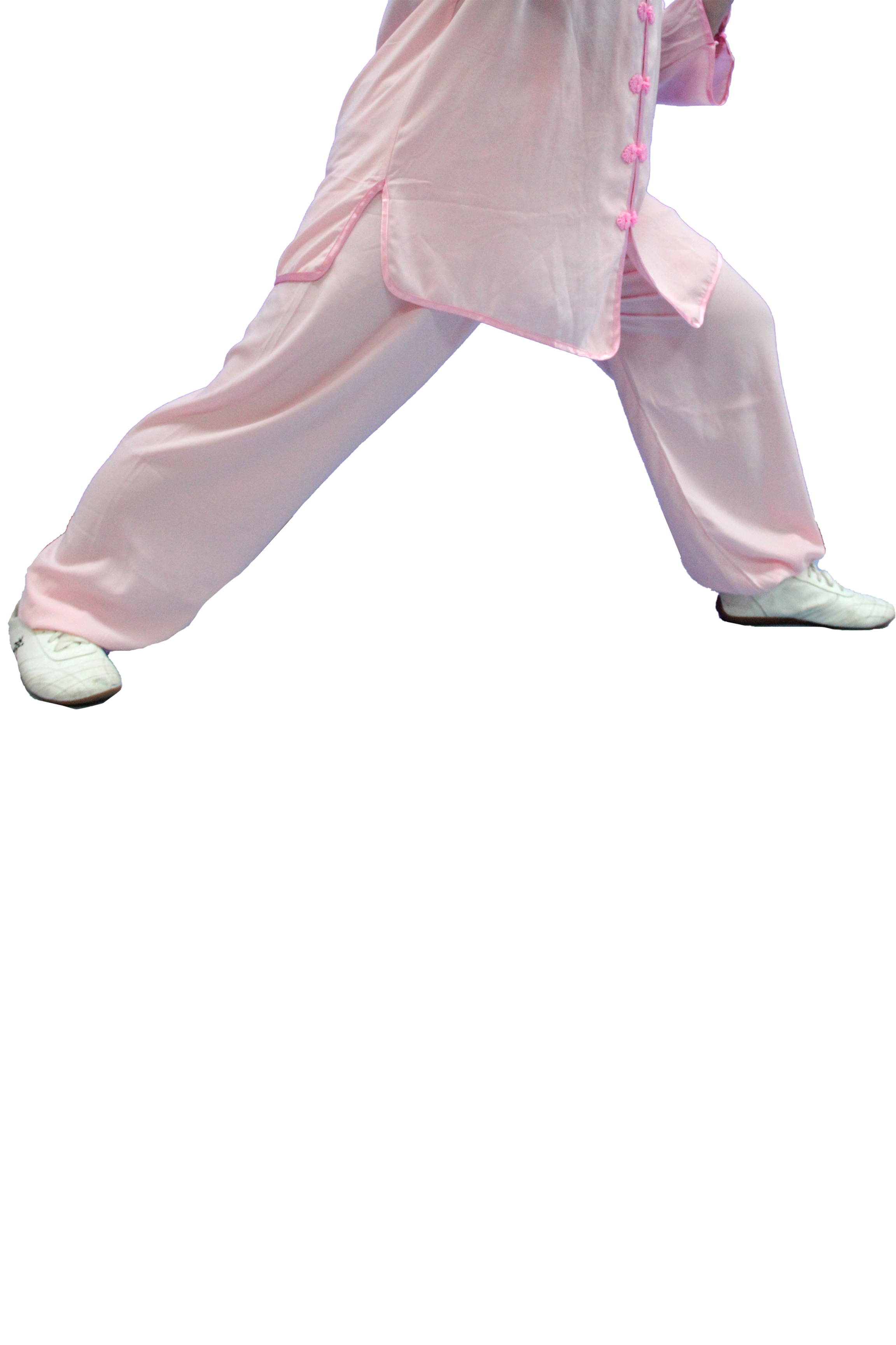 两腿前后分开一大步,横向之间保持一定宽度,前腿屈膝前弓,大腿斜向地面,膝与脚尖上下相对,脚尖微内扣;后腿自然伸直,脚跟蹬地,脚尖微内扣,全脚掌着地(图6 )。