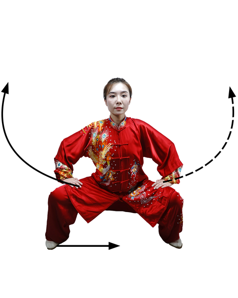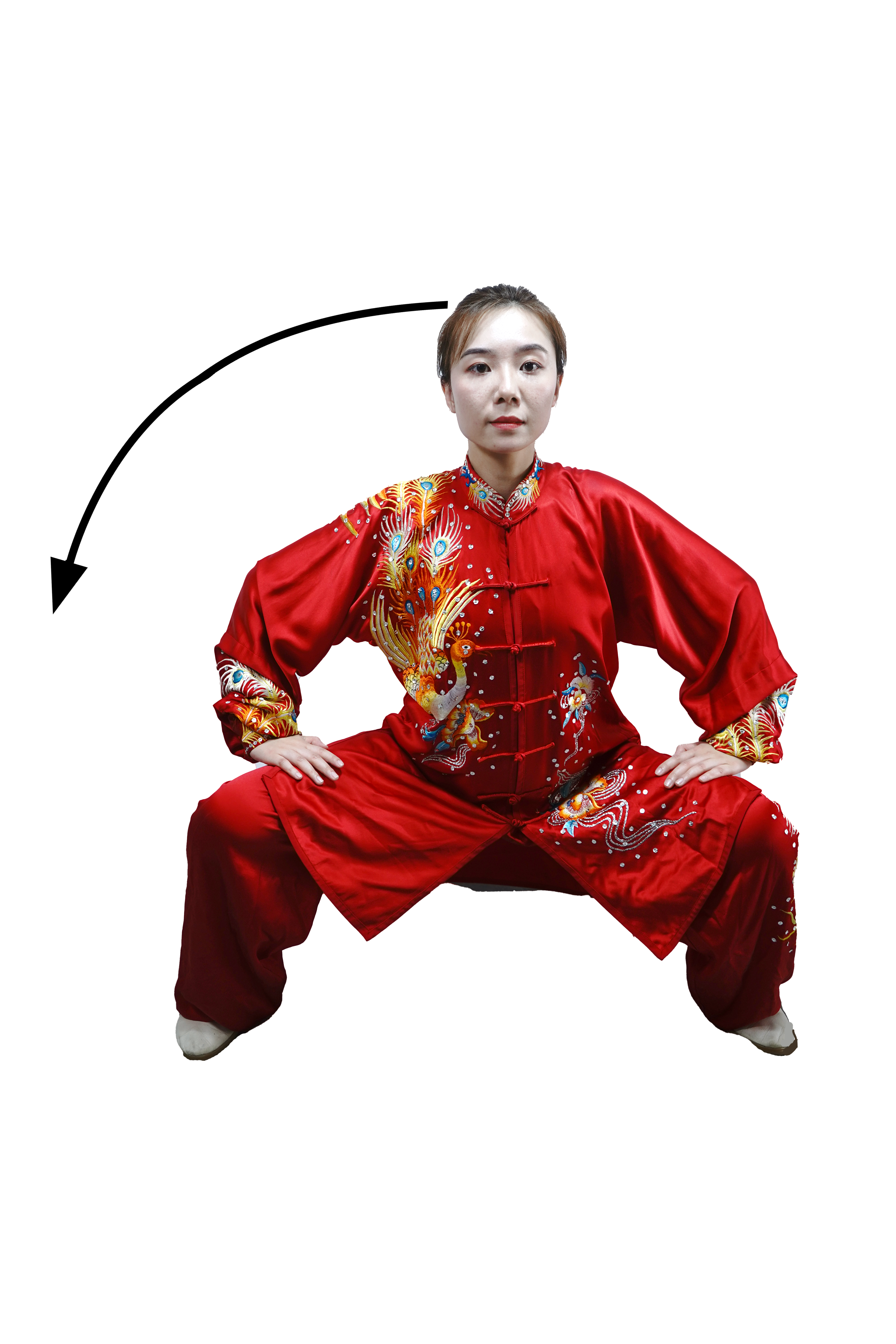 Tuck in the buttocks and tips,and keep the upper body straight when assuming the horse stance.