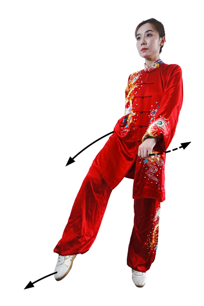 可先练习左右提髋。方法是:两肩保持水平,重心移向右脚,上提左髋,牵动左腿提起,再原处落下;然后重心左移,上 提右髋。以此体会腰侧肌群收缩状态。