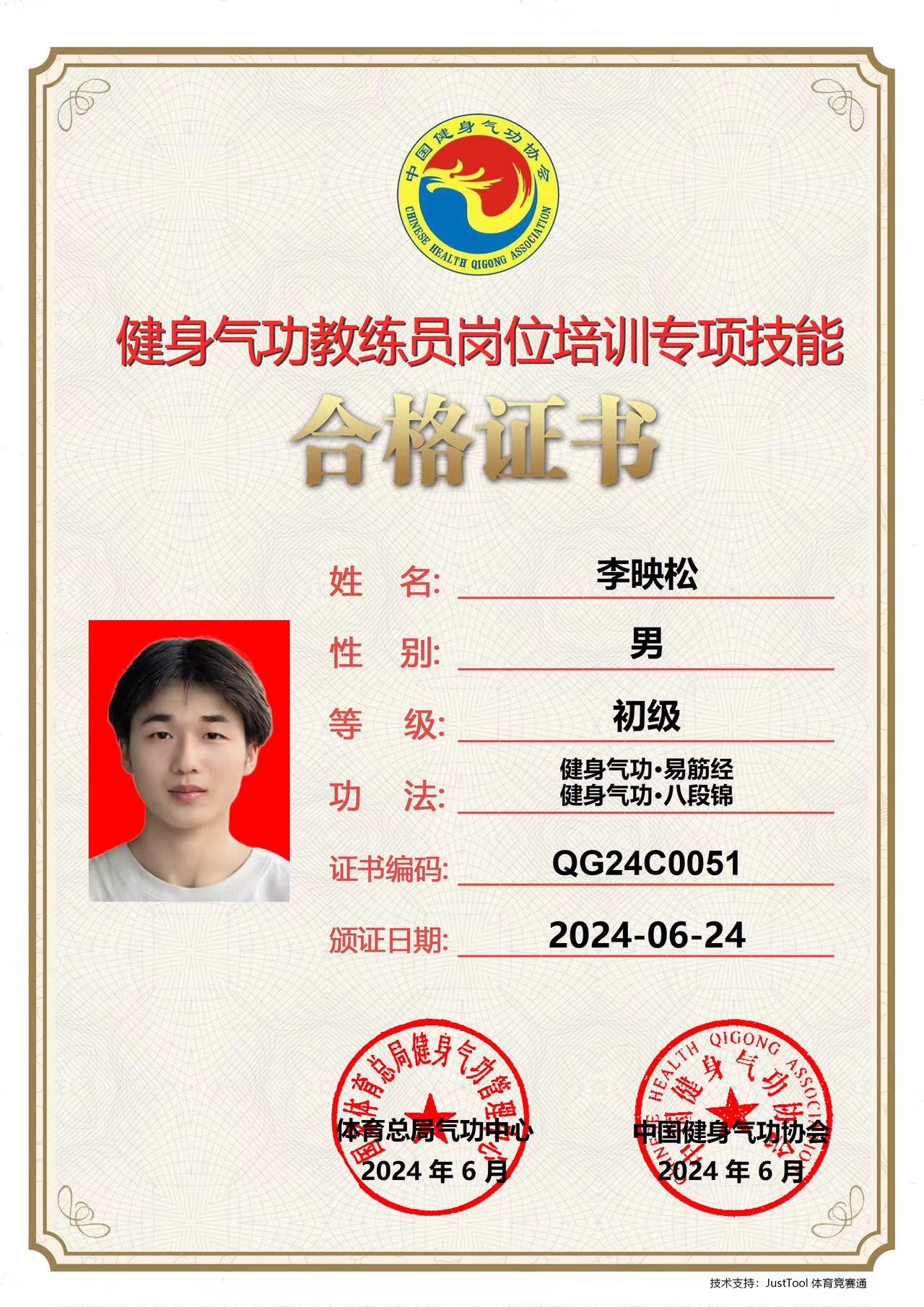 2024年 健身气功初级教练员岗位培训专项技能证书(李映松)