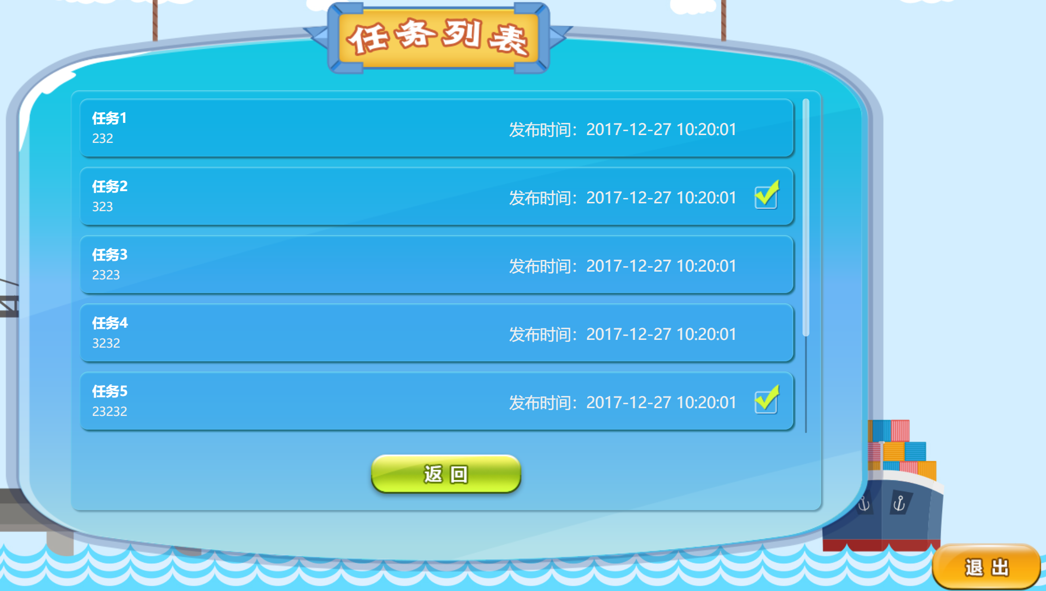 游戏任务:选择正确的船舶完成两地的运输任务。