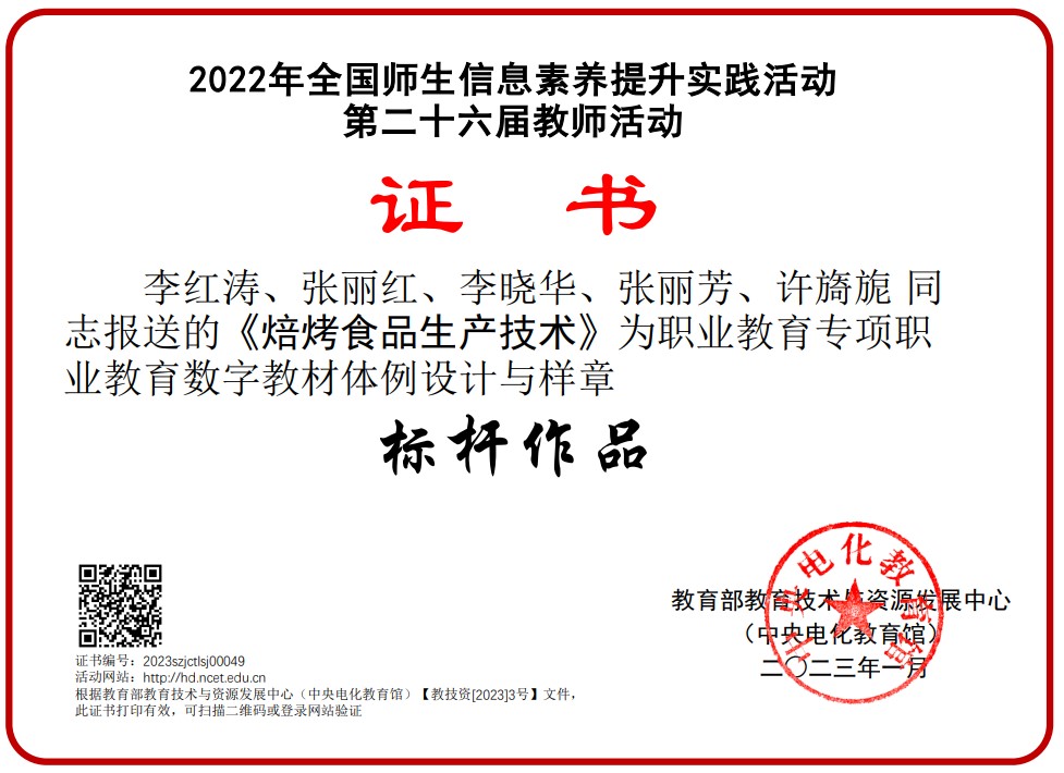 《焙烤食品生产教程》附有关键操作要点彩图166张、产品配方表28个,联合通过二维码融入校行企合作开发的数字资源(教学录像、微课、动画等)111个,引入与头部烘焙企苏州好利来、世界灯塔工厂亿滋食品公司合作开发的吐司面包和梳打饼干生产工厂3D仿真软件2个(在教材第25和171页);同时,数字资源能动态更新,支持混合式教学。