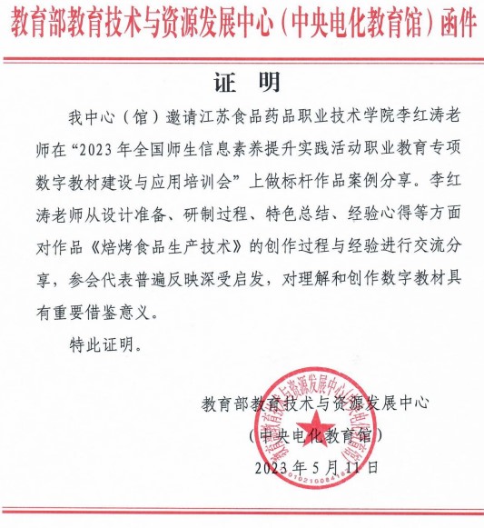 2023年1月,本教材体例与样章设计被教育部教育技术与资源开发中心(中央电化教育馆)授予“标杆作品”,并在全国培训会上进行经验分享。