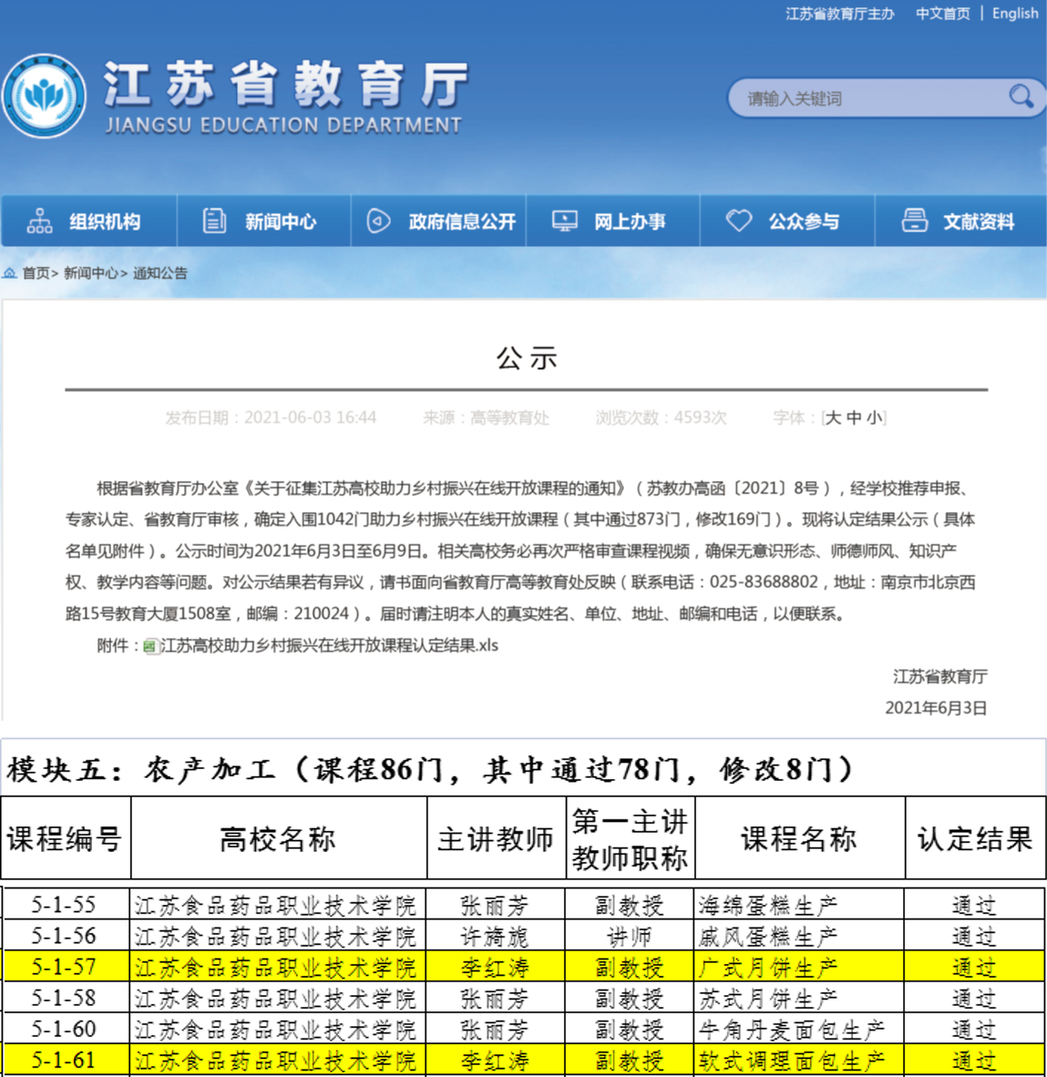 2021年6月,本教材中的六个产品生产教学任务荣获江苏省助力“乡村振兴”在线开放课程。