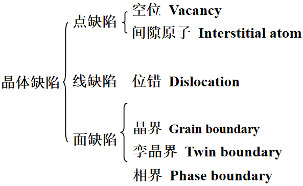 根据晶体中结构不完整区域的形状及大小, 晶体缺陷常分为如下三类: