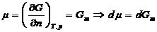 在热力学中定义,当在恒定温度和压强条件下,每增加1mol物质时化学势等于吉布斯函数的变化[11]。