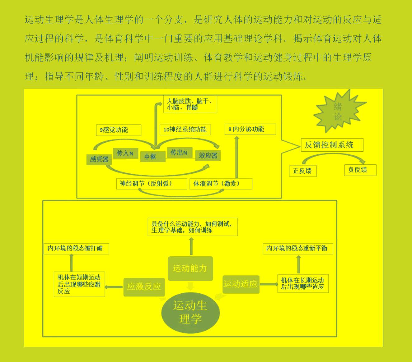 包括有氧无氧工作能力,身体素质,运动过程中的人体机能变化规律,特殊环境与运动,运动技能;