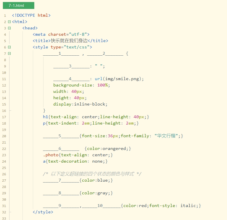 下载以下附件,对照效果图,根据本节学习的知识,完善源码空白处内容。