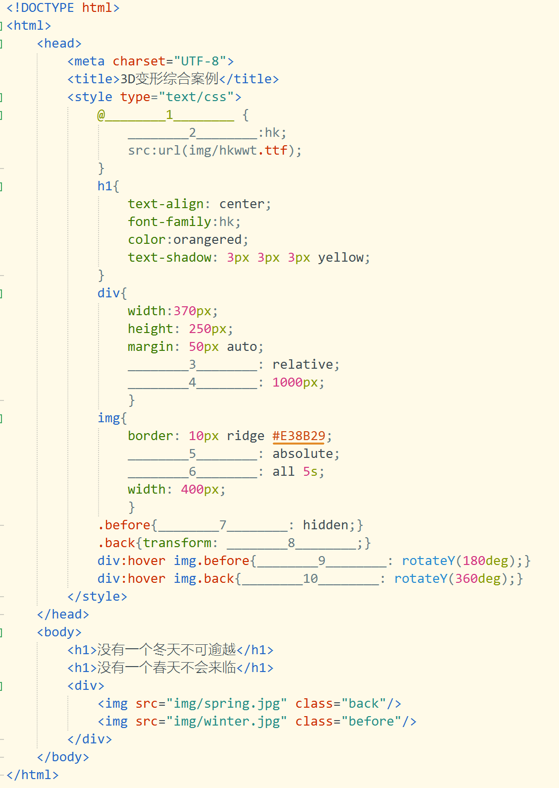 下载以下附件,对照效果图,根据本节学习的知识,完善源码空白处内容。