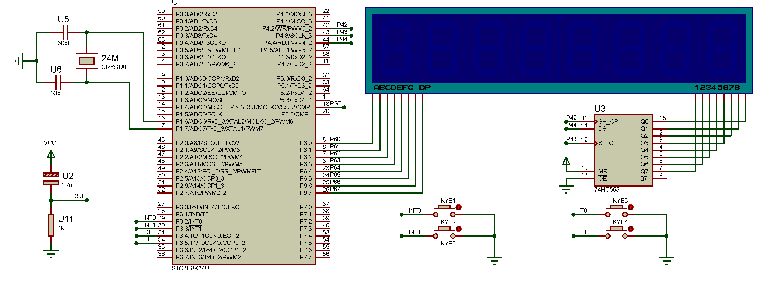 (1)修改程序,利用外部中断1控制8在数码管上右移。