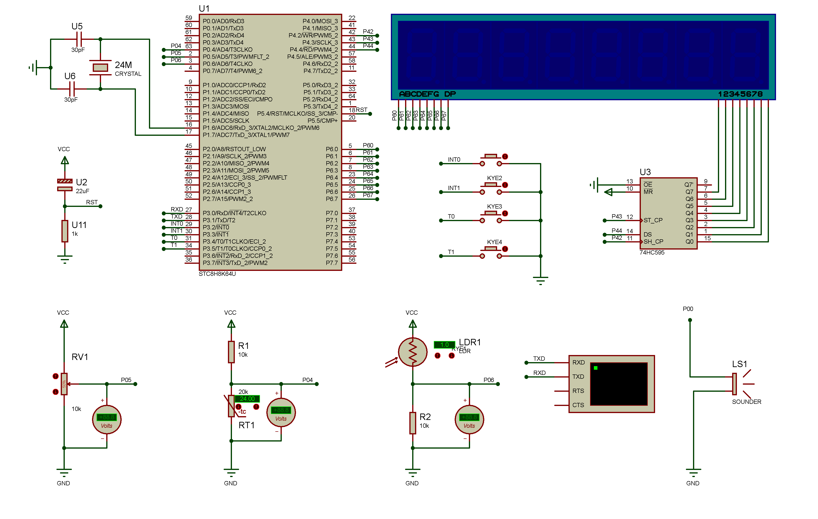 (1)模块化设计:在延时、中断、数码管显示、计数器、按键、ADC等功能模块化基础上,将串口程序进行模块化设计;