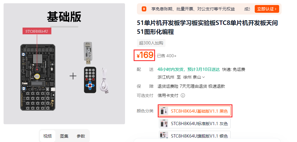 1、淘宝官方购买-全新板子,价格较高,质量可靠,可以使用整个大学阶段,推荐对单片机感兴趣的同学。