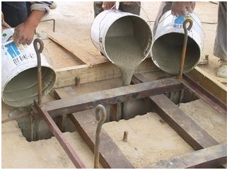 浇灌基础时预先在基础内留出地脚螺栓的预留孔。在设备安装时,再把地脚螺栓安装在预留孔内浇灌混凝土或水泥度砂浆,使地脚螺栓牢固。通常分为一次灌浆和二次灌浆。