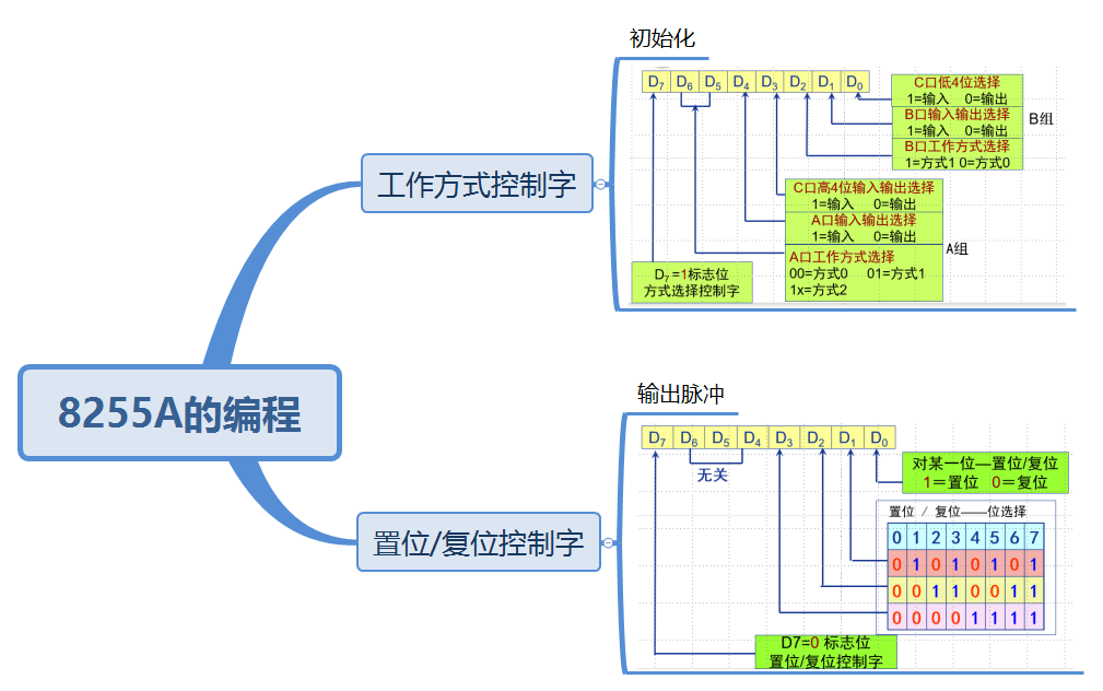 (1) 掌握8255A的工作方式控制字