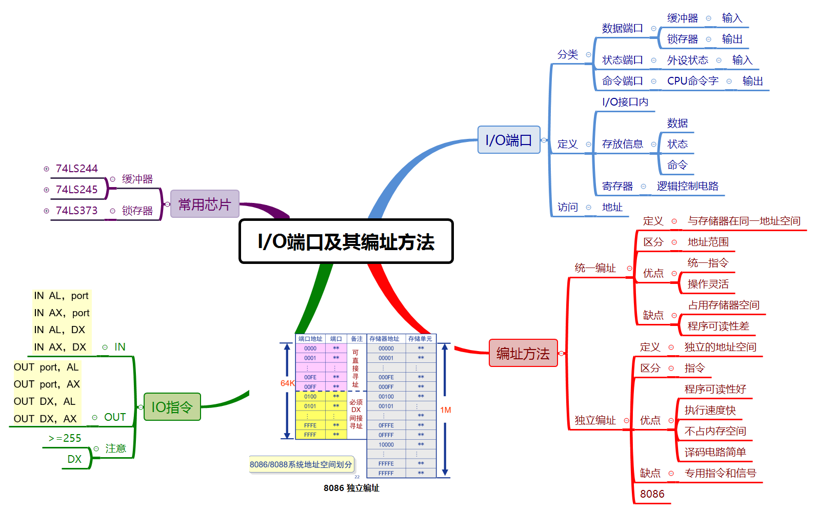 2)理解I/O端口统一编址和独立编址2种方法的特点;