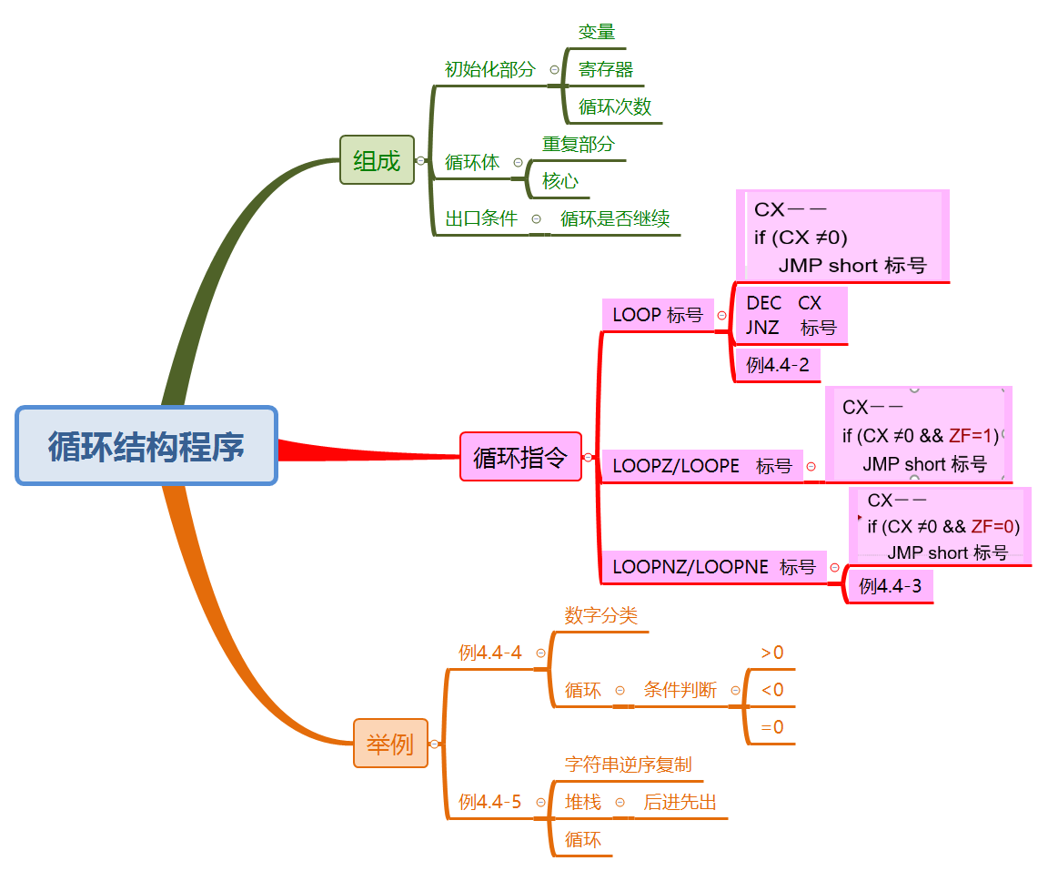 1)循环指令LOOP、LOOPZ/LOOPE、LOOPNZ/LOOPNE的使用方法
