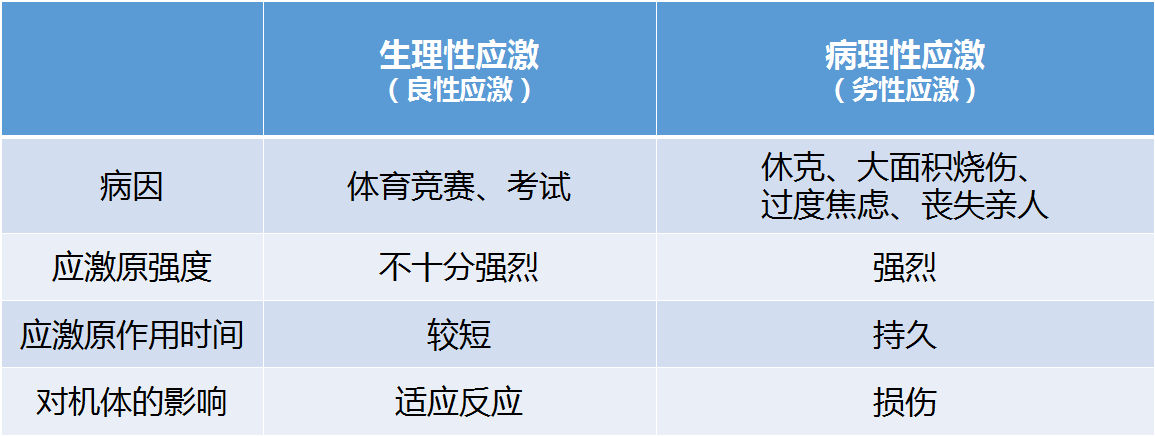 生理性应激/良性应激(eustress)和病理性应激/劣性应激(distress)
