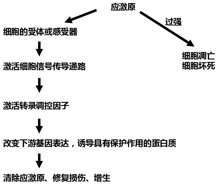细胞应激反应(cellular stress response)是指在各种有害因素导致生物大分子(如膜脂质、蛋白质和DNA)损伤、细胞稳态破坏时,细胞通过调节自身的蛋白表达与活性,产生一系列防御性反应,以增强其抗损伤能力、重建细胞稳态。