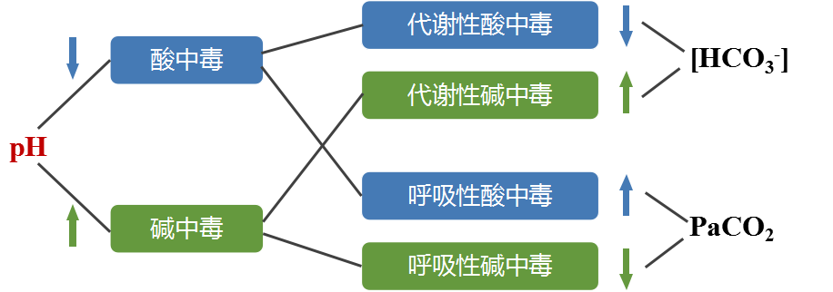 (1)按pH分类。pH降低称为酸中毒,pH升高称为碱中毒;