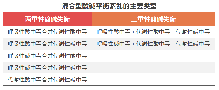 有些患者存在两种或两种以上的单纯型酸碱平衡紊乱,即发生了混合型酸碱平衡紊乱。