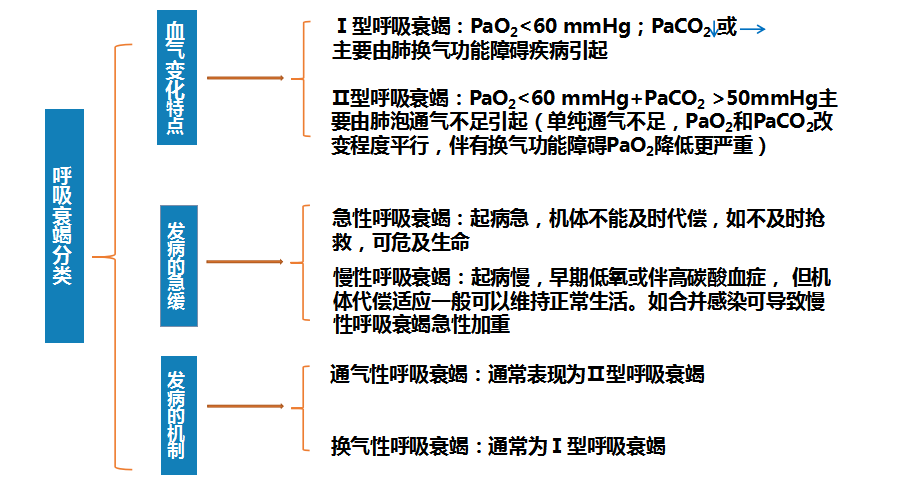 根据发病的缓急,分为慢性和急性呼吸衰竭。