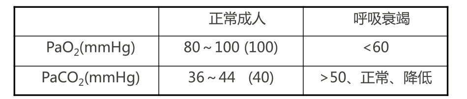 呼吸功能衰竭缺乏特异性临床表现,因此其诊断主要依赖动脉血气分析: